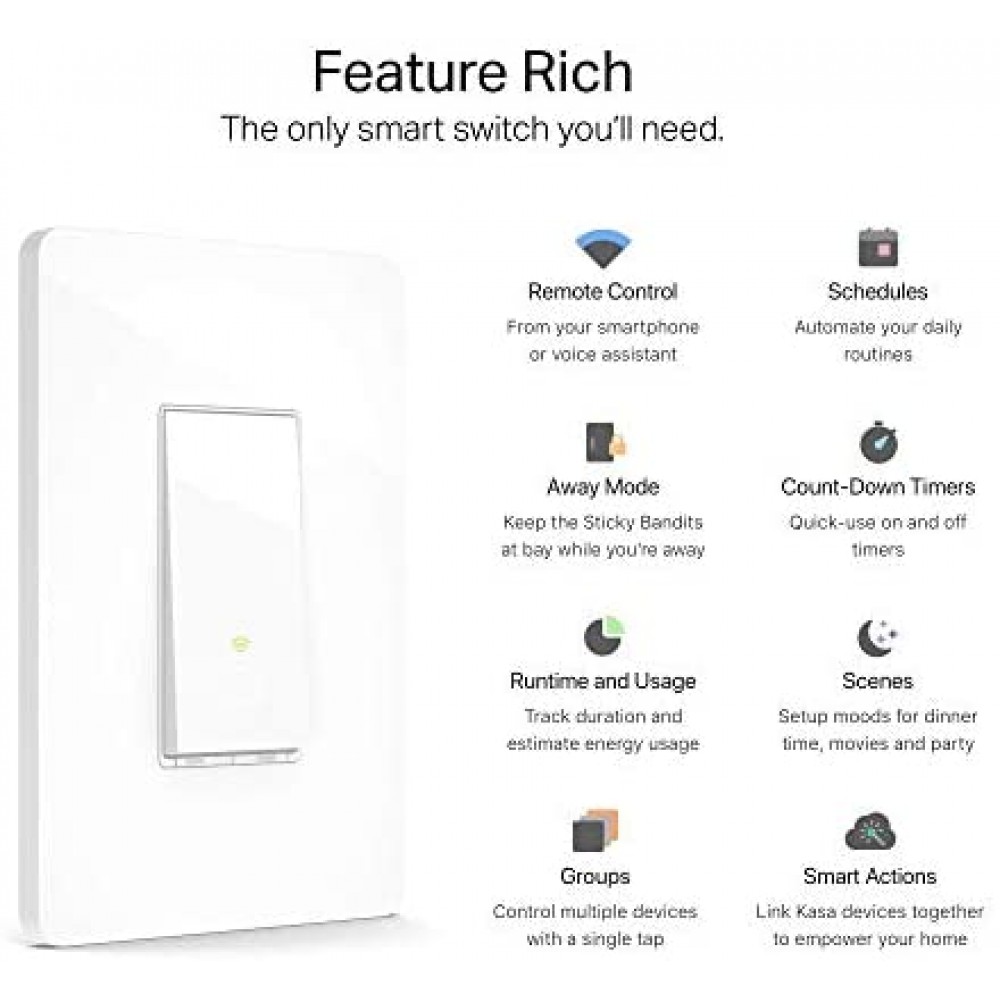Tags: Kasa Smart (HS200) Light Switch by TP-Link, Single Pole, Needs Neutral Wire, 2.4Ghz WiFi Light Switch Works with Alexa and Google Assistant, UL Certified, 1-Pack, White, TP-LINK USA, HS200