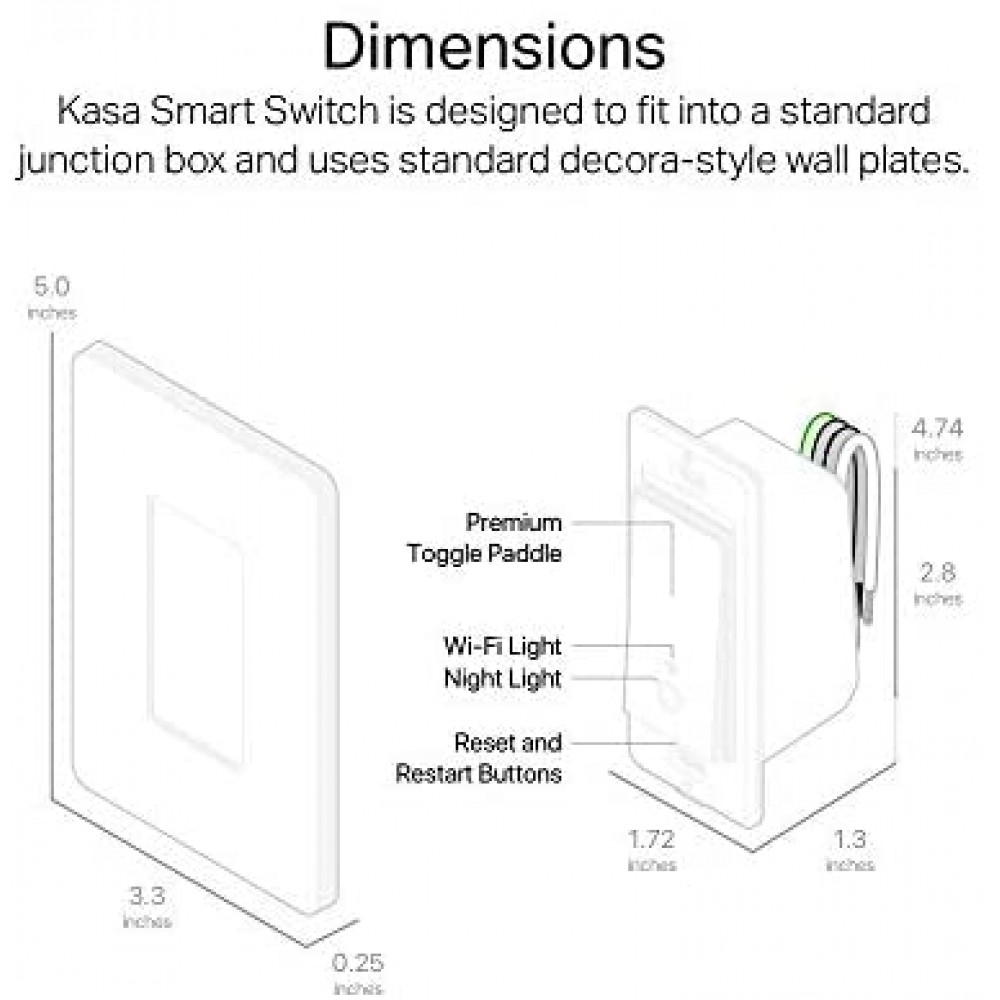 - Easy guided install: Neutral wire is required, standard wall plate size. No need to understand complex switch wiring or master vs auxiliary switch configurations; The Kasa app guides you through easy step by step installation. Need 2.4GHz Wi-Fi connection