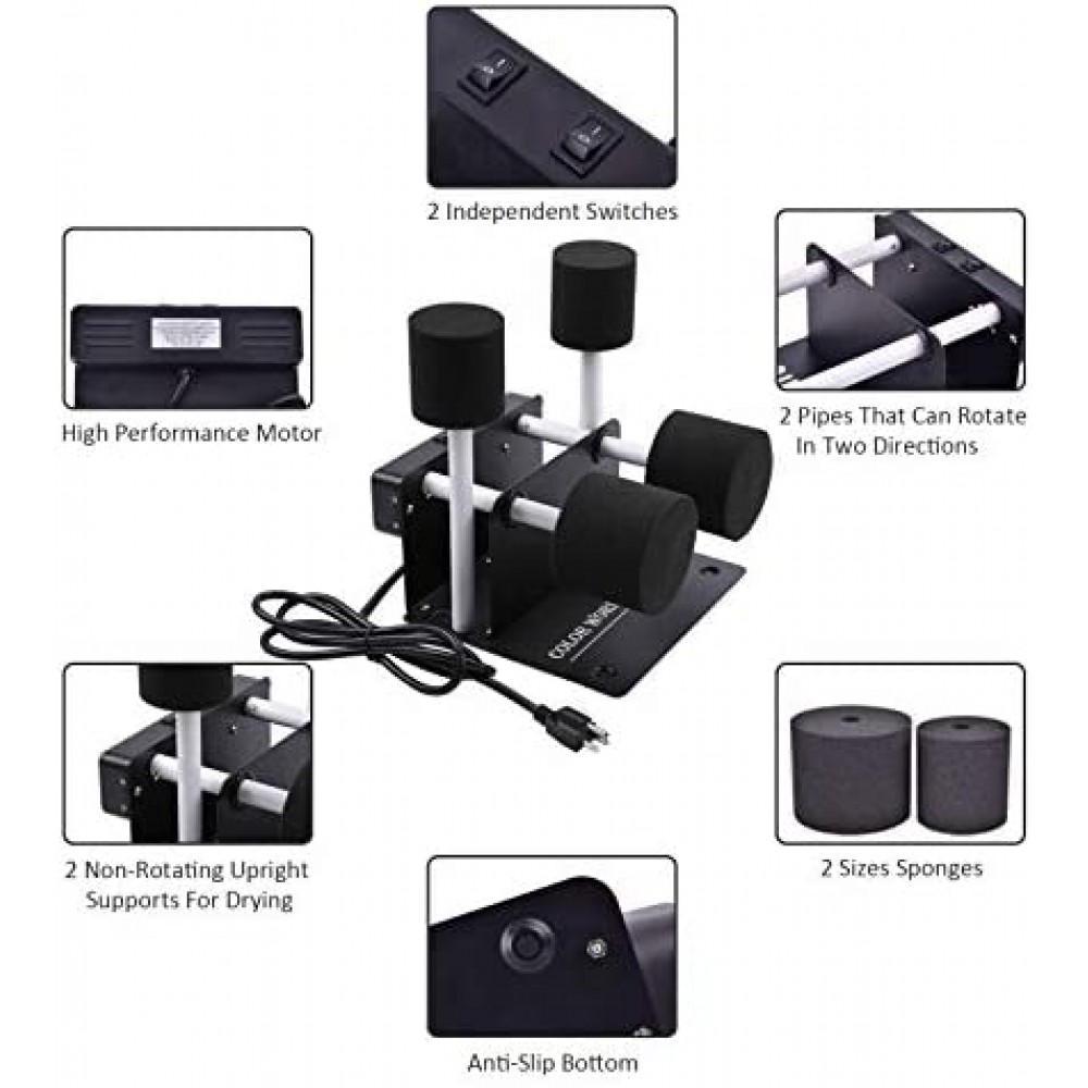 - ??easy to assemble and use?The tumbler rotator is designed precisely and the parts fit snugly. You only need 3-5 minutes to assemble all the parts to get a complete cup spinner.Uniform rotation speed of 3-4 rpm on a solid steel frame will help your cups maintain balance so the clear epoxy coats dry and painting evenly and smoothly.?? Press the switch,the cup spin can rotate clockwise or counterclockwise randomly. Change spin direction just re-opened the switch.