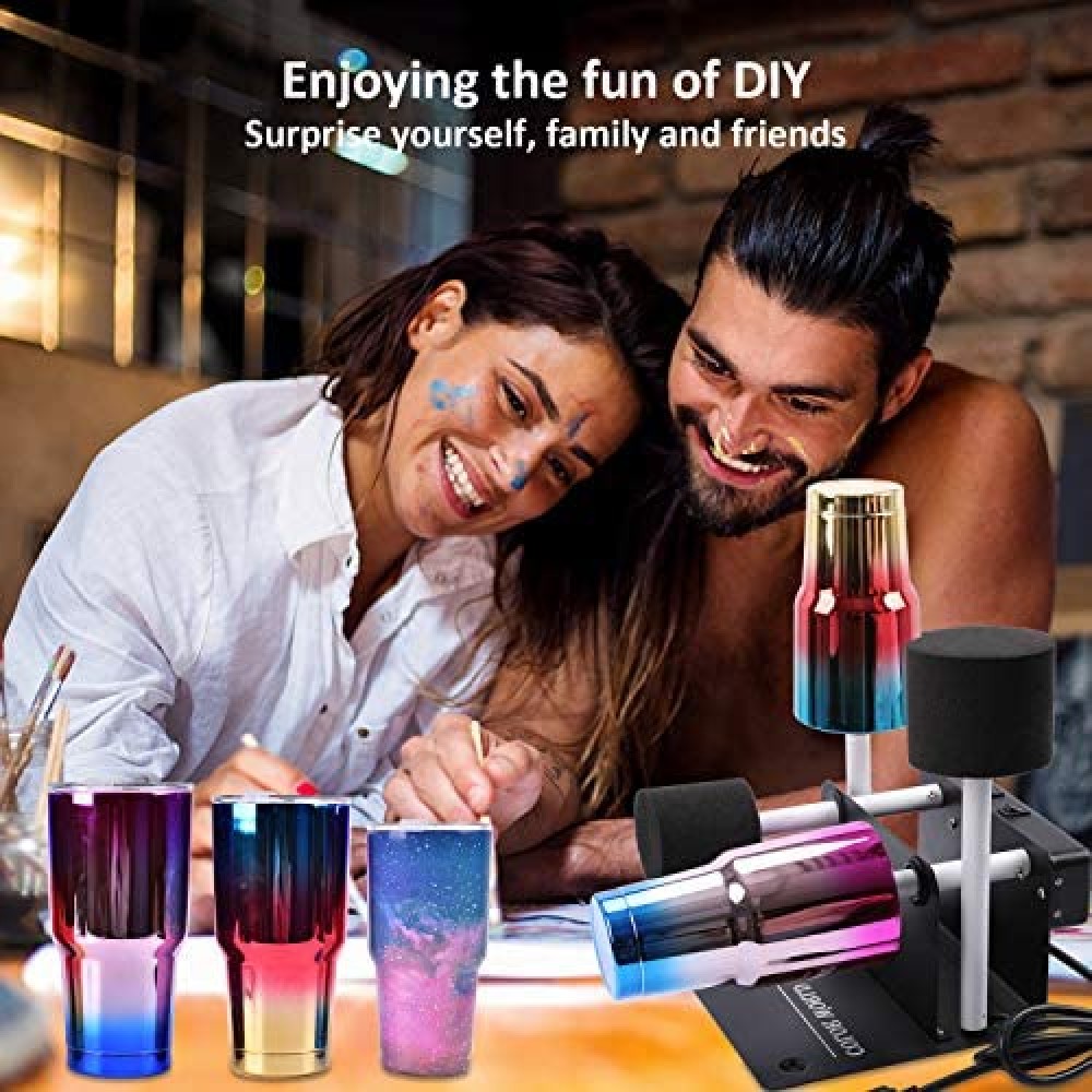 - ??Experience and enjoy the fun of crafting? This cup turner has two rotating wand , and 2 switches independently control two rotating shafts?so that you can make glitter craft together with your family and friends. This process not only allows you to enjoy the fun of DIY product, but also enhances the relationship between you and your family and friends.
