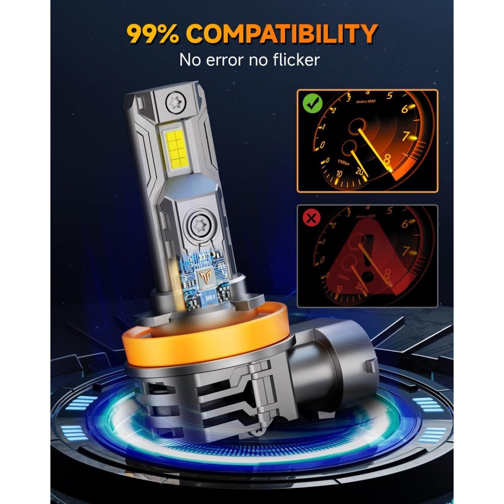 - 【99%+ Vehicle Compatibility】FAHREN H11 9005 Bulbs combo Equipped with the latest upgraded linear decoding technology and built-in intelligent IC driver, it is suitable for more than 98% of vehicles. CANbus ready, ensuring no errors, flickering, or radio interference. Please note: Some sensitive vehicle models may still require a CANbus decoder. Feel free to contact FAHREN if needed
