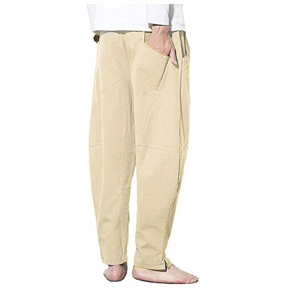Tags: AITFINEISM Men Cotton Linen Yoga Pant Casual Drawstring Loose Fit Baggy Harem Pants